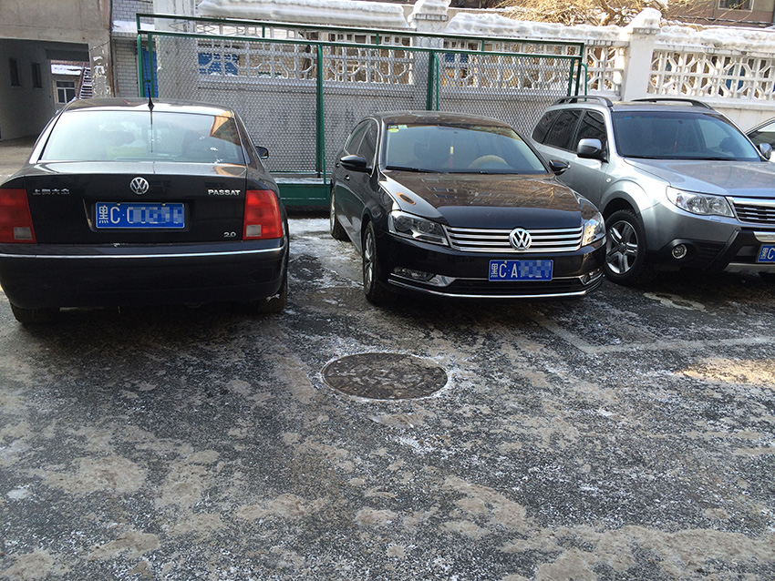 停在牡丹江市地税局后院的车辆(2013年12月10日摄)。新华社记者程子龙摄 |